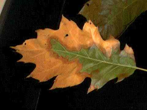| Xylella fastidiosa is the bacterial pathogen the survives, travels through and reproduces in the xylem, reducing water transport and probably producing toxins. Xylem feeding insects such as leafhoppers and spittlebugs are believed to transmit the disease from tree to tree (Greenwood).