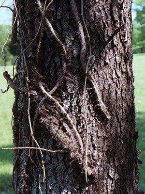 Toxicodendron radicans DESCRIPTION Poison ivy's most recognizable feature is its three leaflets. These can be smooth edged, toothed or slightly lobed in appearance. This variation can occur within the three leaflets of a compound leaf or a whole plant may appear in one of these forms. This can make identification tricky. The leaves are usually fairly shiny, especially in the spring when they are new and reddish. In the fall they become brilliant yellows, reds and oranges. This perennial plant's habit may be prostrate or climbing. It supports itself using its aerial rootlets to hold on to structures such as trees or buildings. These rootlets make the vine look like a dark brown hairy rope. A mature plant will produce waxy grayish-white berries which are actually eaten by myrtle warblers and tree swallows. WARNING! Poison ivy can cause an allergic reaction ranging from a mild rash to oozing blisters. All plant parts contain the 'urushiol' oil that causes a reaction in some people. The rash can erupt within a few days or over a week, even sooner for skin that is already irritated. It doesn't really spread and it is not contagious. The "spreading" on your skin is only your body reacting to the allergen over time or possibly re-exposure to any items that have the oil on them. It is very important to wash anything that came in contact with poison ivy with soap and plenty of water. (Water does not spread poison ivy unless you take a bath with the oil that was on your skin.) This includes clothes, tools, you, your dog, and maybe even your co-worker who never gets poison ivy. The oil on these things will spread to other surfaces and re-expose you. Remember, just because you have never had a reaction to poison ivy doesn't mean you never will. |